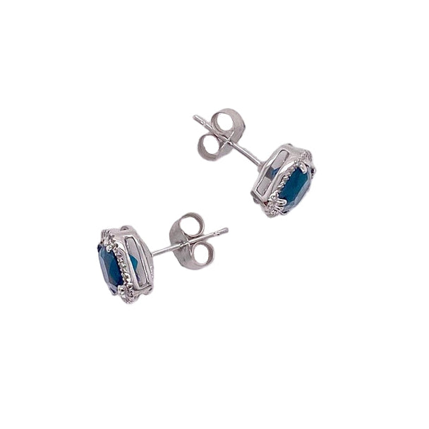 Cushion London Blue Topaz Diamond Halo Stud Earrings