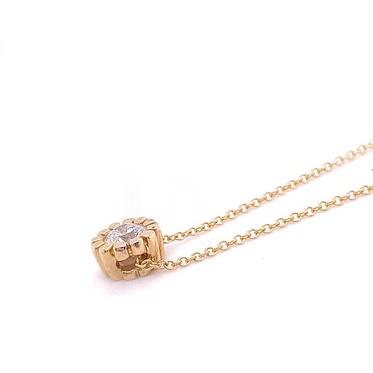Diamond Solitaire Necklace, Yellow Gold, Round Brilliant Diamond Pendant Star