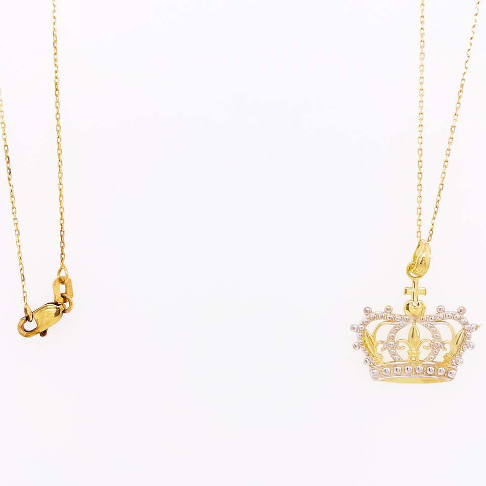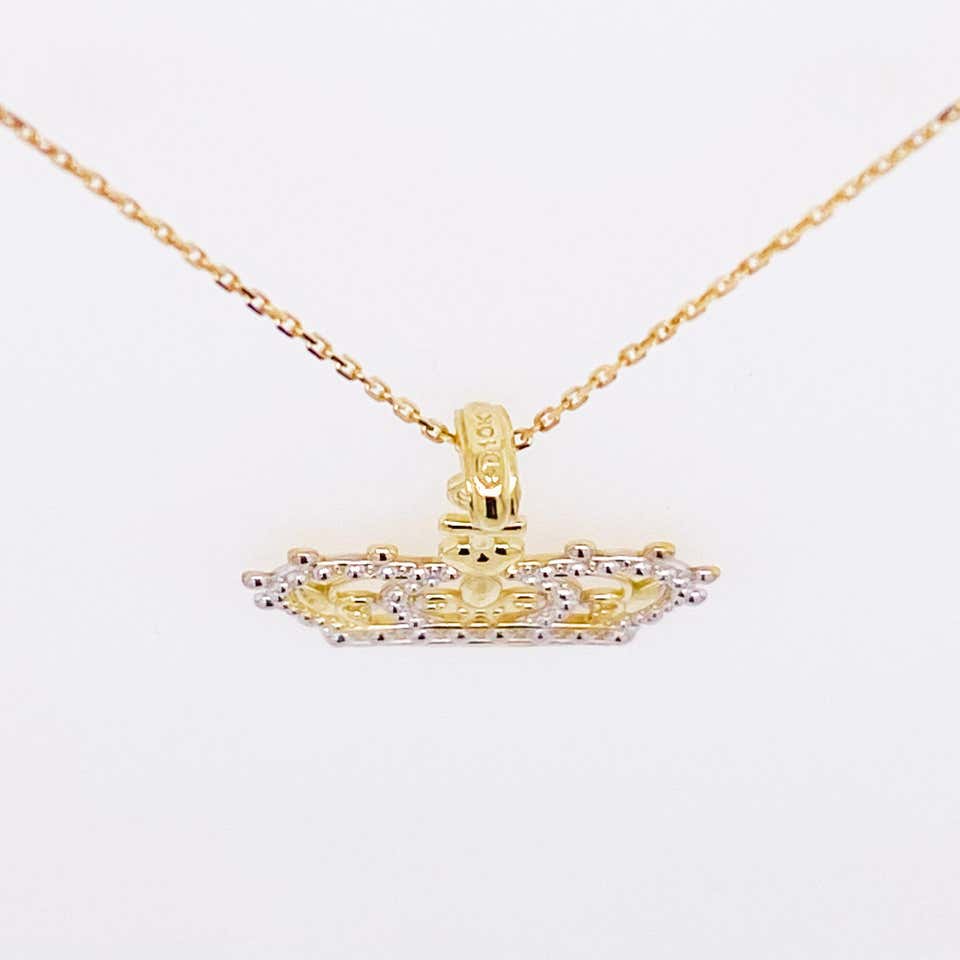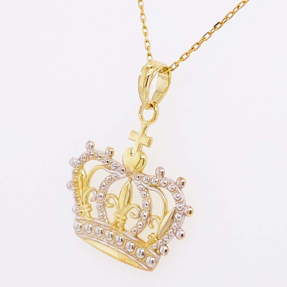 Gold Crown Necklace, Pendant, 14K Gold, Queen, Princess, Royalty, Mixed Metal