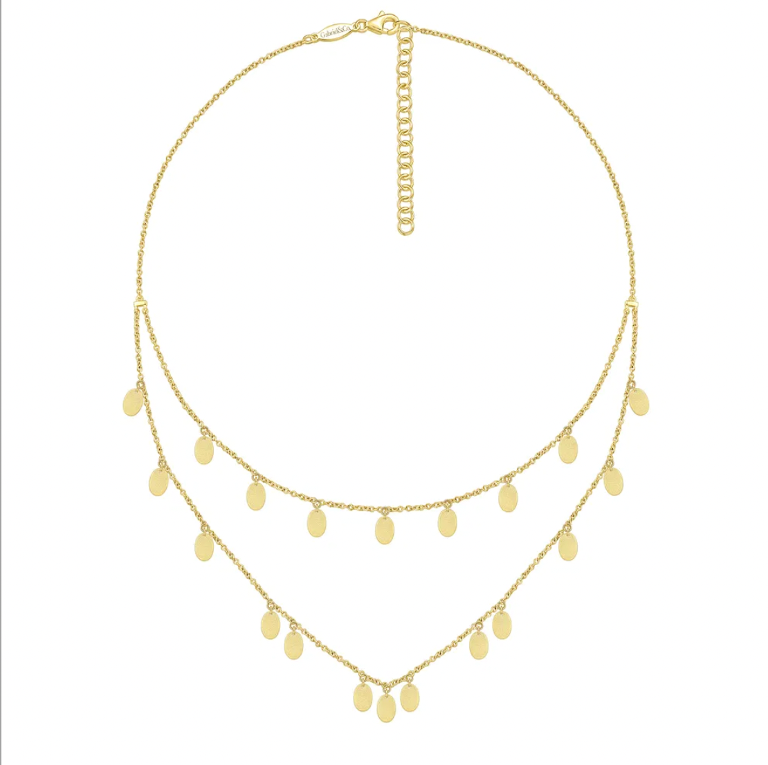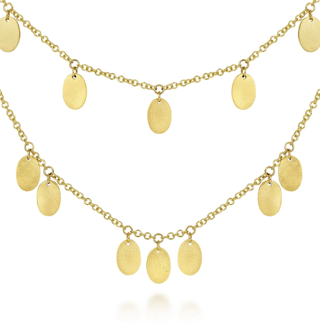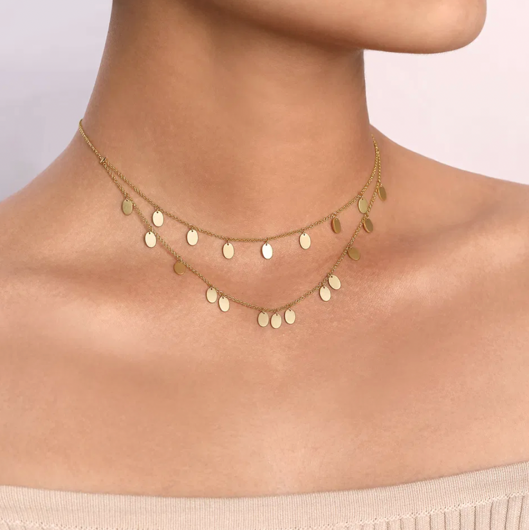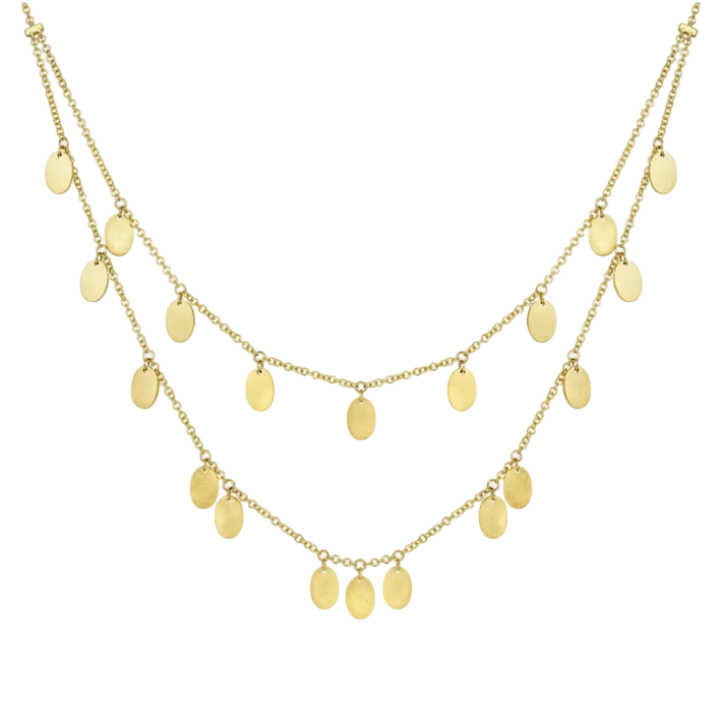 This simple yet elegant necklace is the exact necklace you've been searching for. The ovals are strategically stationed on the double strand necklace to reflect the light and put you in the spotlight!