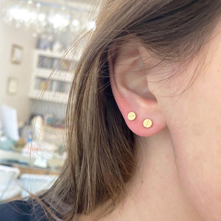 Round Gold Earrings Stud Style Modern Post Earrings 14k Yellow Gold